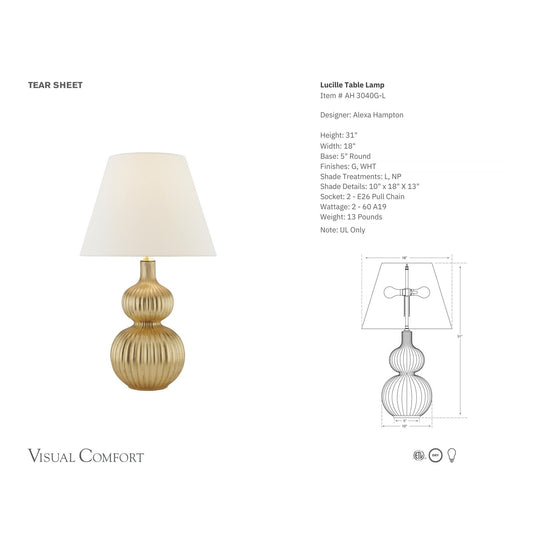 Alexa Hampton Lucille Linen Table Lamp - Gilded Iron