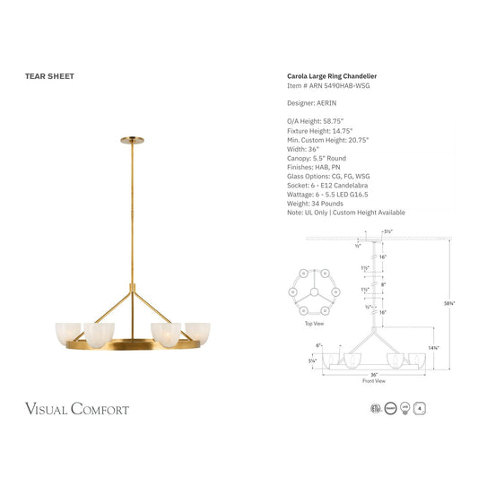 AERIN Carola Large Glass Ring Chandelier - Brass