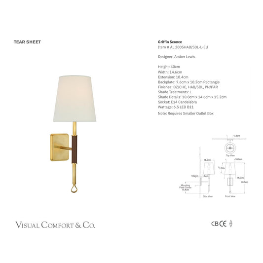 Amber Lewis Griffin Linen Wall Sconce - Brass & Leather