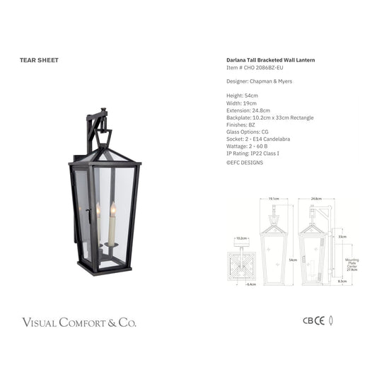 E. F. Chapman Darlana Small Tall Bracketed Wall Lantern Light - Bronze