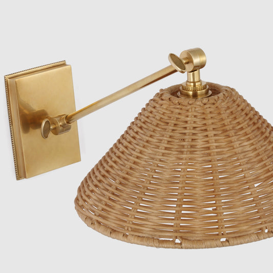Marie Flanigan Wimberley Double Library Natural Wicker Wall Light - Brass