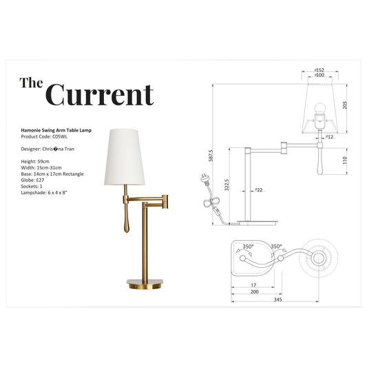 Christina Tran Harmonie Swing Arm Linen Table Lamp - Brass