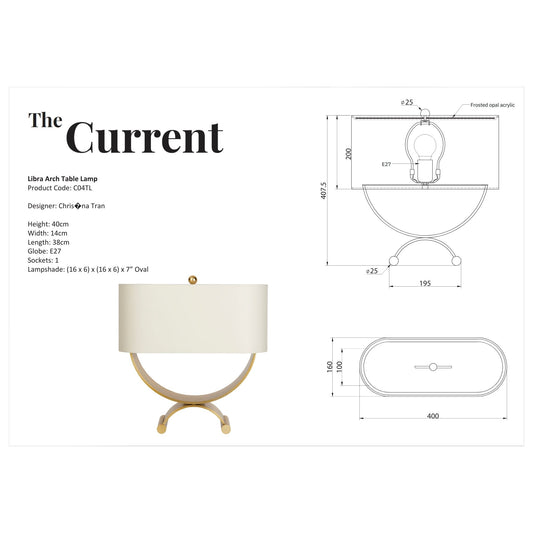 Christina Tran Libra Arch Linen Table Lamp - Brass