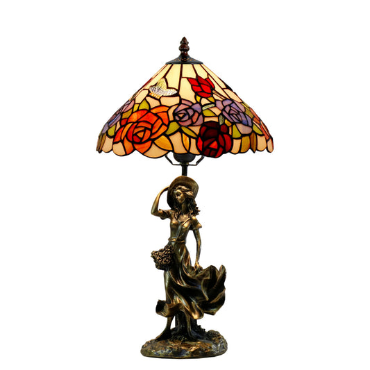 Janay Beige Edwardian Stained Glass Floor Lamp
