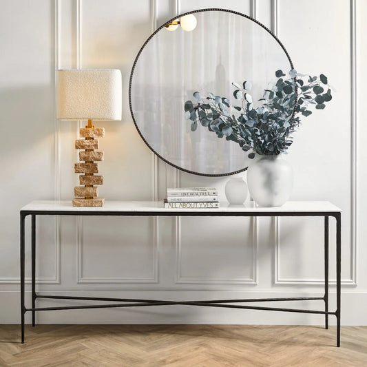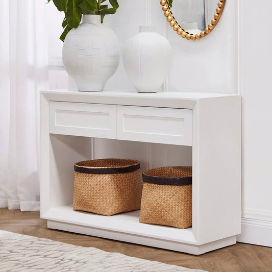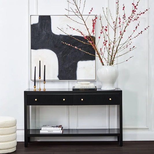 Console tables are slim and stylish pieces of furniture, perfect for entryways, living rooms, or hallways. They offer a convenient surface for displaying decor, such as vases, artwork, or lamps, while also serving as a functional spot for keys, mail, or other essentials. With their narrow design, console tables fit seamlessly into smaller spaces without overwhelming the room.