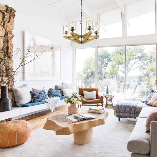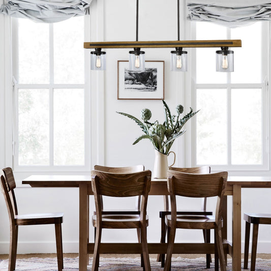 VOTIF Retro Oak Wood With Clear Blown Dimpled Glass Pendant Light