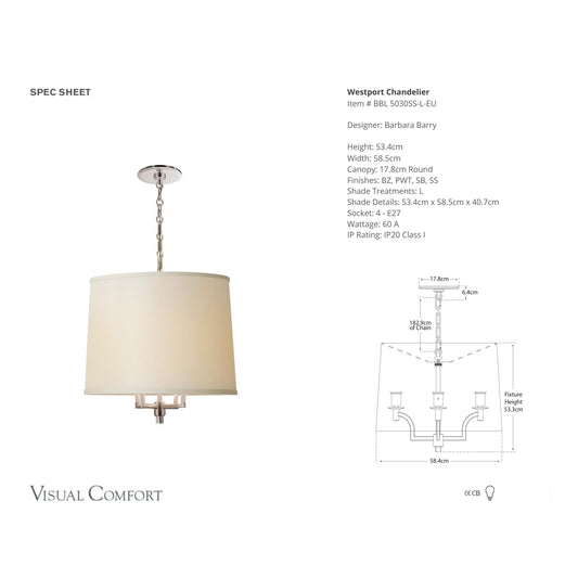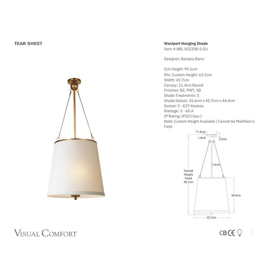 Barbara Barry Westport Large Hanging Shade Pendant Light - Soft Silver