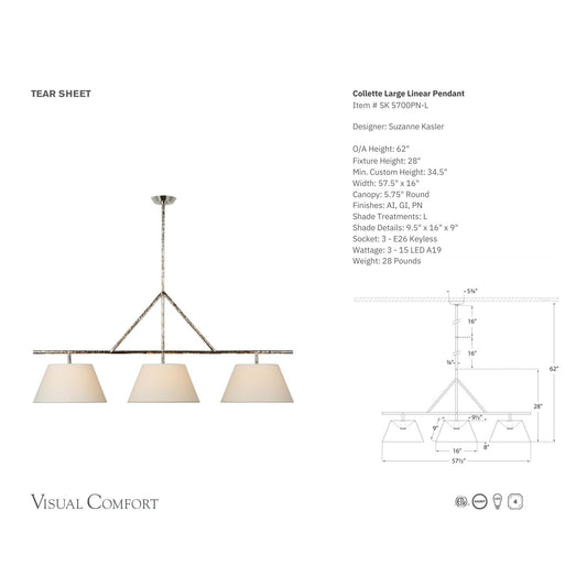 Suzanne Kasler Collette Large Linear Pendant Light - Polished Nickel
