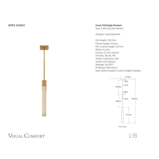 Kelly Wearstler Covet Tall Alabaster Single Pendant Light