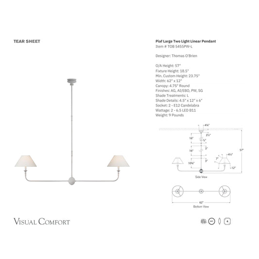 Thomas O'Brien Piaf Large Two-Light Linear Pendant Light - Plaster WhiteRegular price From $1,490.00 AUDRegular priceUnit price / per-