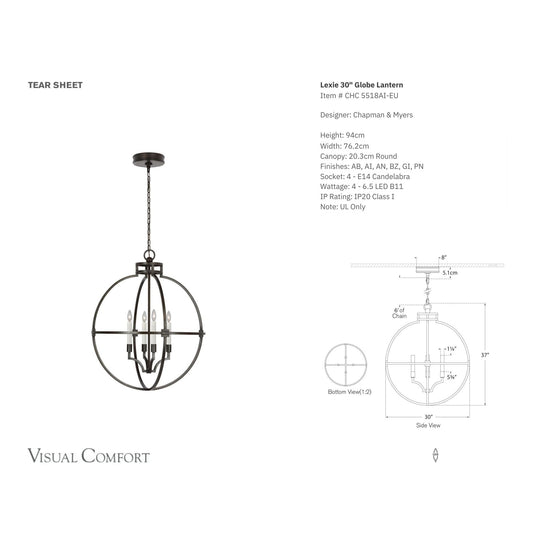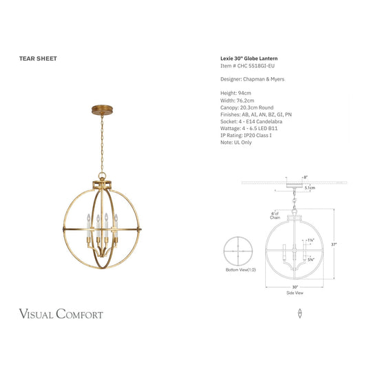 Chapman & Myers Lexie 30" Globe Lantern Light - Iron GildRegular price $2,990.00 AUDRegular priceUnit price / per-
