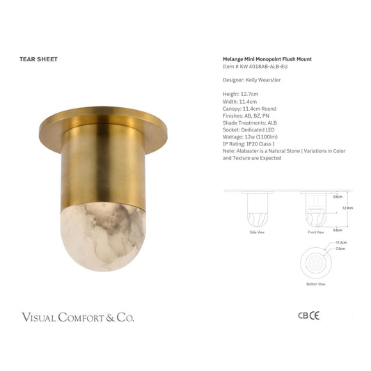 Kelly Wearstler Melange Alabaster Mini Monopoint Flush Mount