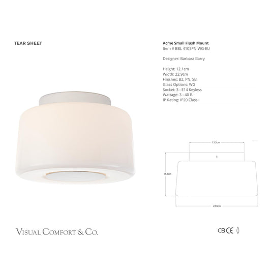 Barbara Barry Acme Small Flush Mount Ceiling Light