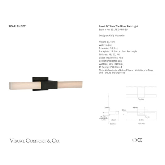 Kelly Wearstler Covet 24" Over The Mirror Alabaster Bath Wall Light