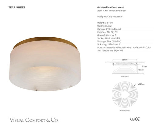 Kelly Wearstler Otto Medium Brass Alabaster Flush Ceiling Light