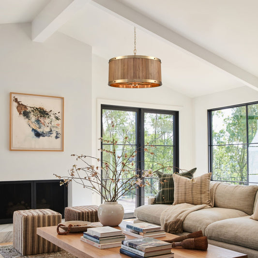 BARRIQUE Retro Medium Drum Wood Pendant Light