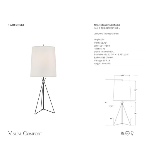 Thomas O'Brien Tavares Large Linen Table Lamp - Aged Iron, Brass