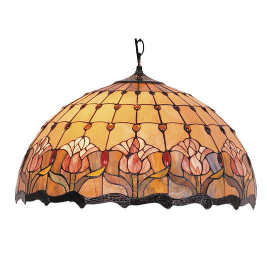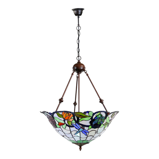 Tiffany Rose & Dragonfly 3-Arm Stained Glass Pendant Light